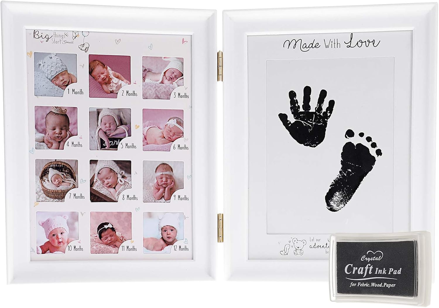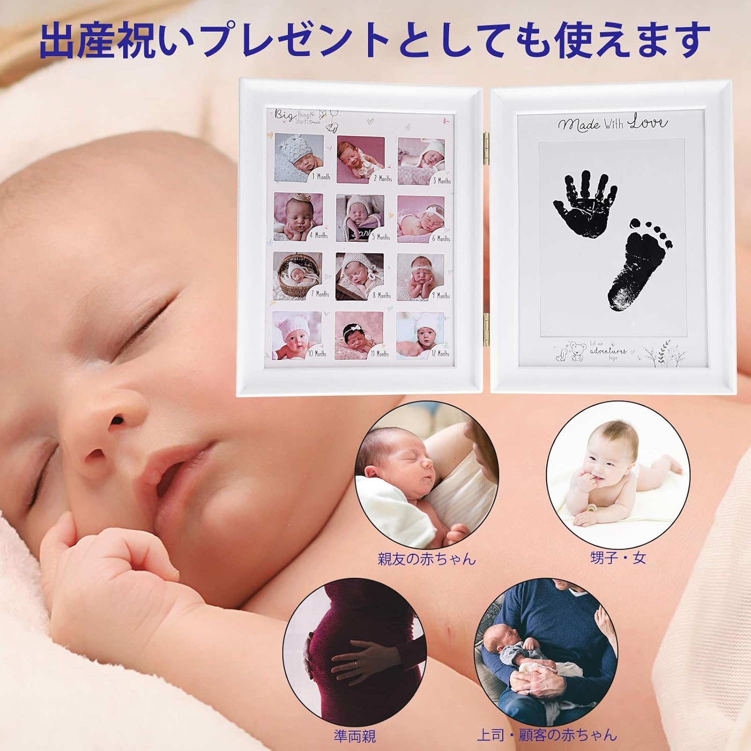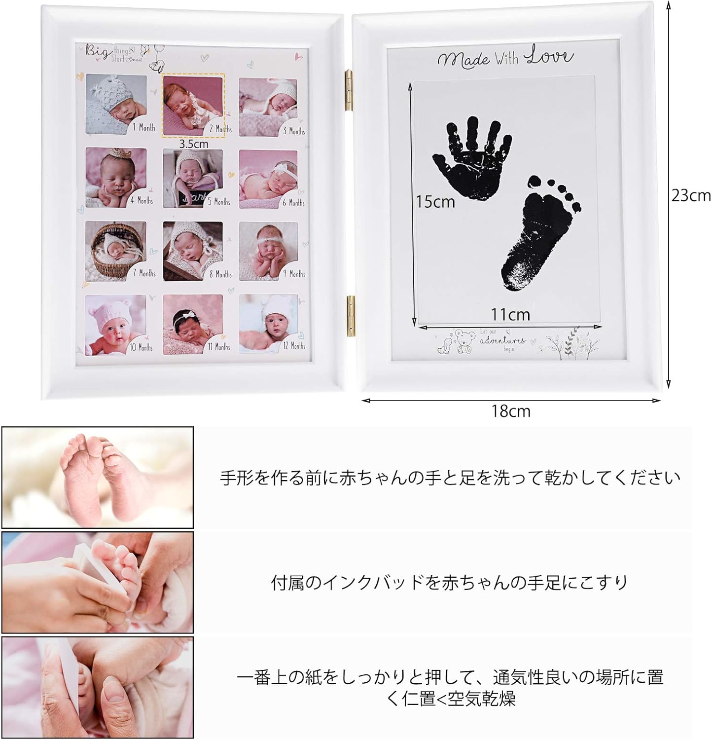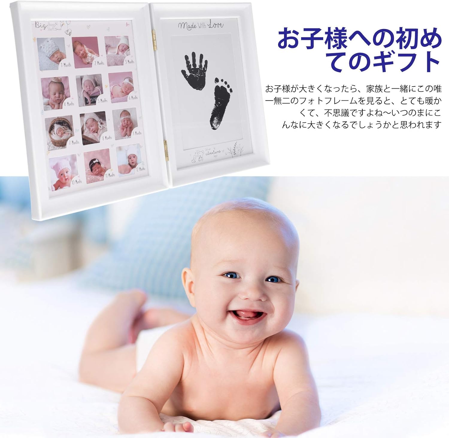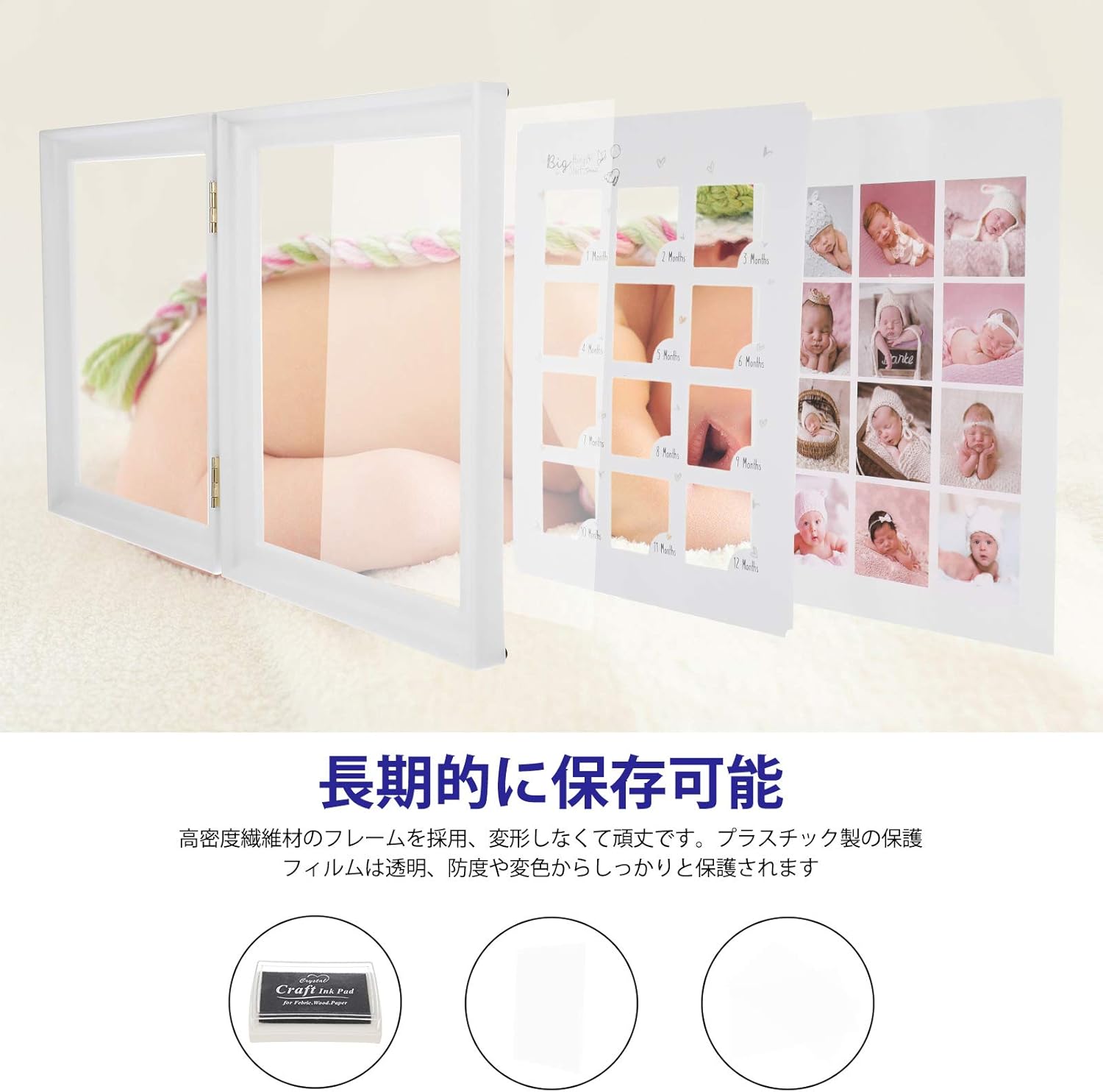 Aumesa Rano ベビーフレーム 赤ちゃん 手形 足形 月齢フォト 12ヶ月フォトフレーム 写真入れ ベビーグッズ 写真立て 置き掛け兼用 無毒で安全 新生児 出産祝い 男の子 女子の子 内祝い メモリアル ベビー記念品 一歳誕生日プレゼント 成長記録 ギフト