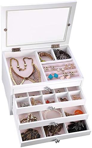 AW Jewelry Box with Clear Glass Lid, 4 Tiers, Jewelry Storage Drawers, High Quality, Wood, Jewelry Box, Accessory Case, Jewelry Storage Box, Earrings, Necklaces, Rings, Storage, Jewelry Box
