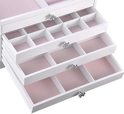 Each drawer has compartments to hold various sizes of jewelry and accessories.