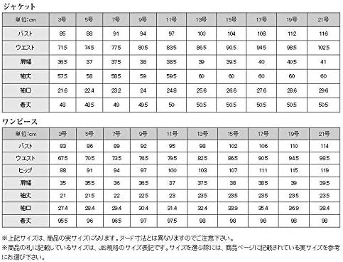 SIZE:7 ジャケット(肩幅:36.5cm 袖丈:58cm 身幅:44cm 着丈:49cm)ワンピース(肩幅:35.5cm 袖丈:22cm 身幅:42cm ウエスト:75cm 着丈:96cm)