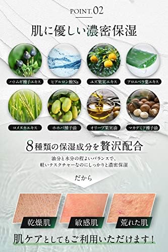 Moisturizing and Skin Care: With a luxurious blend of 8 types of moisturizing ingredients, it can be used by people with dry, sensitive skin, or rough skin.