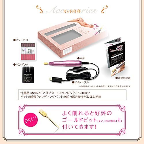 手の平サイズ・軽量設計のUSB式ネイルマシン 時間がかかるスカルプ・ジェルネイルのオフ作業をスピードアップ。 ・どこでも使える。 便利なUSB式 USB式でモバイルバッテリーやPCから電源を取れるので、コンセントがない場所でも使用でき移動にも便利。 ・正逆回転可能 スイッチひとつで逆回転に切り替えられるので、左右どちらの手で持っても使えます。 ・無段階スピード調整 低速から少しずつ削ることもハイパワーで削ることも思いのまま。 ・使いやすい6種類のビット付き 届いてすぐに使えるように、ビットセットが付属しています。ネイルケアからオフ、パーツの成形などにもご使用いただけます。 ・操作はワンタッチ。 回転も速度も手元で調整 ケーブルに搭載されているコントローラーで簡単に調整ができます。 ●付属品:USB式コントローラーケーブル、USB式アダプター、ビット6種類、取扱説明書 ●回転数:6000~20500RPM(実測テスト済み) ●電圧:AC100V~240V ●保証:お買い上げ日より1年間 ※ご購入3ヶ月以内の初期不良・自然故障は送料・修理費無料。 3ヶ月~1年以内の自然故障は送料のみお客様ご負担・修理費は無料で承ります。 付属品・コントローラーは消耗品の為、保証外となっております。