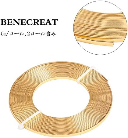 BENECREAT 2ロール10m幅3mm金色アルミ線 平角線 5m/ロール 曲げる線 ジュエリー作り 工芸品 園芸 手作り素材 クラフト用