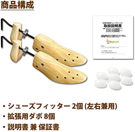 【製品内容】シューズフィッター本体(左右兼用):2個 ダボ:8個 マニュアル:1枚 本体素材:天然木・スチール・ポリプロピレン