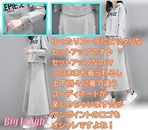 [ Big laugh (ビッグラフ) ] セットアップ パーカー スカート ルームウェア フード ロゴ 女 フレア 無地 レディース 色んなコーデが楽しめちゃう♪