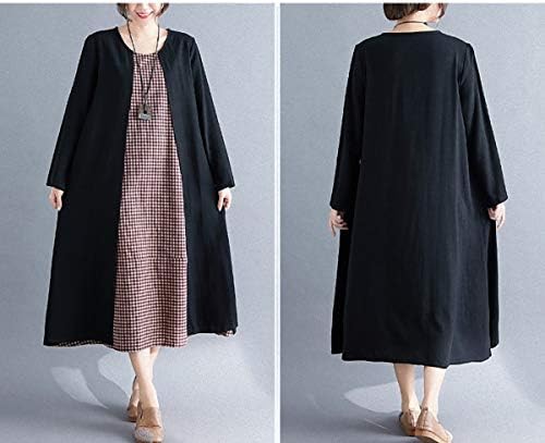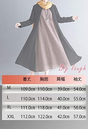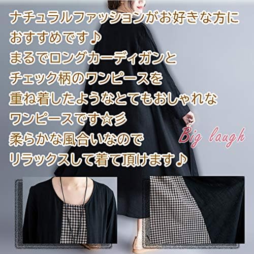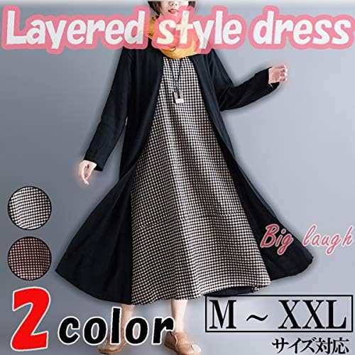 [ Big laugh (ビッグラフ) ] ロング ワンピース 長袖 シンプル 無地 カーデ 重ね着風 チェック 柄 お洒落 レディース