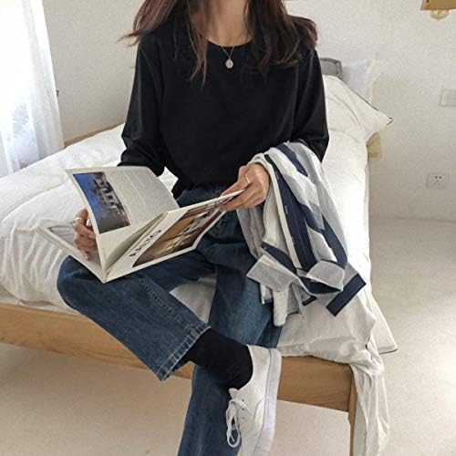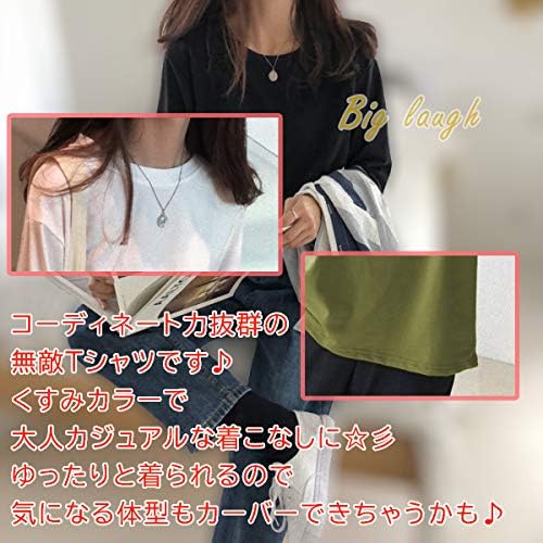 Big laugh Women’s T-shirt, Cut and Sewn, Long Sleeve, Oversized Crew Neck, Big Silhouette, Simple and Easy to Coordinate.