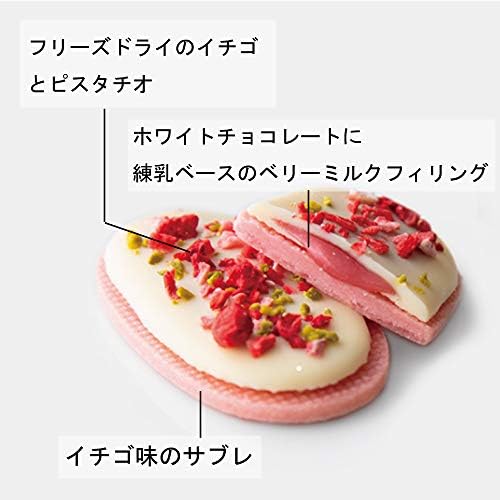 「ホワイト」ホワイトチョコレートに練乳ベースのとろりとしたベリーミルクフィリング(イチゴ・フランボワーズ)を閉じ込め、サクサク食感のイチゴ味のサブレと合わせました。