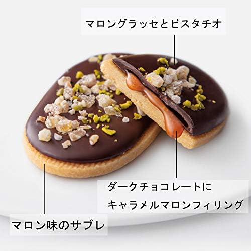 「ダーク」ダークチョコレートにとろりとしたキャラメルマロンフィリングを閉じ込め、サクサク食感のマロン味のサブレと合わせました。
