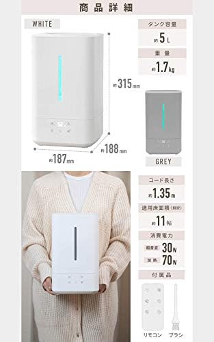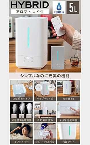 Bonarca STC-500 (WH) Hybrid-Type Humidifier, 13.5 fl oz (5.0 L) Maximum Humidification 13.5 fl oz (400 ml)/h – Humidification Levels – 6 & 7 Humidity Settings, Large Capacity, Top Water Supply, Aroma Compatible, Ultrasonic Type, Heating Type, Remote Control Included