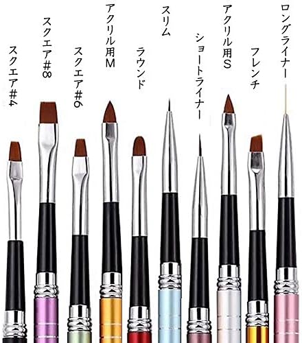 平筆ロング・極細・ラウンド・フレンチ・ラインの5タイプで10種類があります!!色々なネイルデザインを対応することができます。