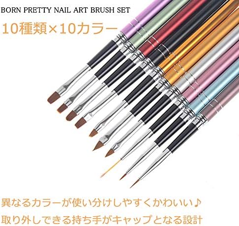 いつも使うものだから丈夫で軽く合金製、キャップ付きとこだわりのネイルアートブラシです!とても使いやすいブラシ10本セットです。