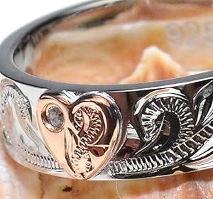 ハワイアンジュエリー 指輪 ピンクゴールドハート シルバー925