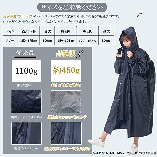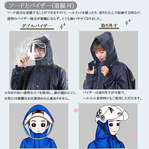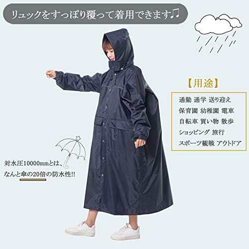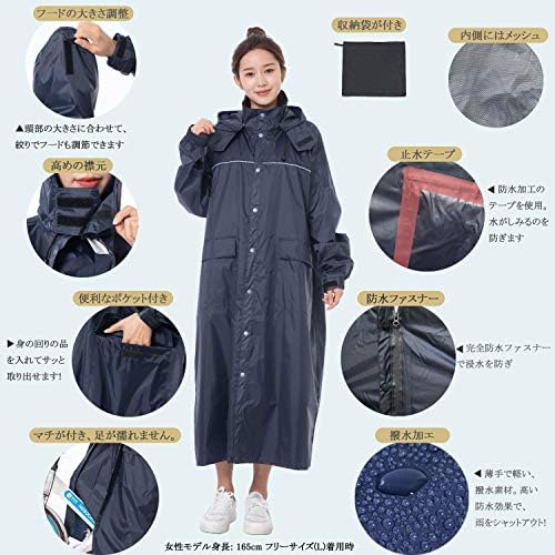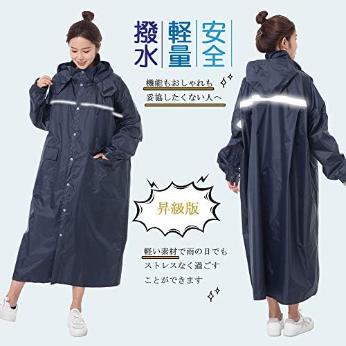 BUQIREN レインコートメンズ レディース 自転車 原付用 ロング丈のおしゃれなレインウェア リュックにも対応 完全防水 防风 豪雨 梅雨対策 防災グッズ 反射テープ 収納袋付きネイビー 紺(軽量)
