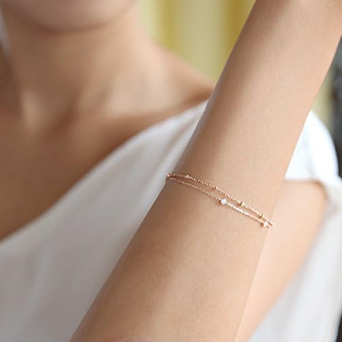 手元を華やかに演出する2連ブレスレット。肌に馴染むピンクゴールドコーティングの優しい色合いも魅力です。眩い輝きを放つキュービックジルコニアを添えた、女性らしさを引き立てるデザインです。
