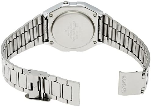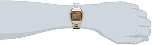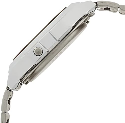 LEDライトと日常生活防水機能を備えた、シンプルなデザインながらゴールド色の文字板を採用したデジタルウォッチ。ステンレスのベルトは調節が簡単なフリー中留めタイプ。