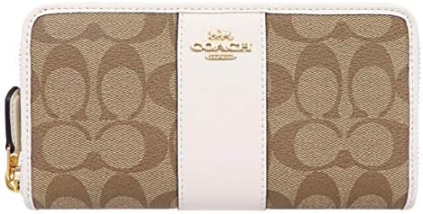 Coach F54630 Wallet (Long Wallet) Khaki x Chalk Luxury Signature PVC Leather Accordion Zip Around Outlet Item