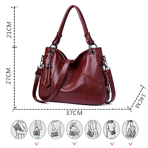 寸法:長さ 37cm、幅 14cm、高さ 27cm。ハンドバック、ショルダーバック、斜め掛けと使っていい。体格に合わせて、ベルトの長さ調整可能。