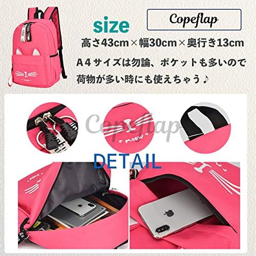School Rucksack, Large Capacity, Girls, 2-Way, Multi-functional Pockets, Students, Teens, Cat Ears, Cats, Cat Rucksack, Cat Backpack, Waterproof, Small