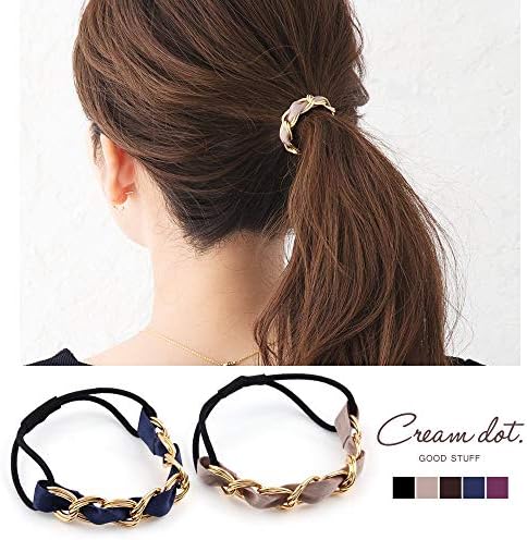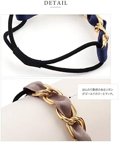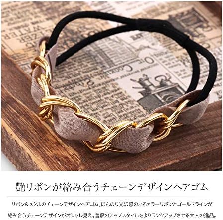 リボン&メタルのチェーンデザインヘアゴム。 ほんのり光沢感のあるカラーリボンとゴールドラインが 絡み合うチェーンデザインがオシャレ見え。 普段のアップスタイルをよりランクアップさせる大人の逸品