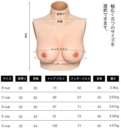 【製品サイズ】カップ:D。首周り:32cm、肩幅:32cm、トップバスト:87cm、アンダーバスト:71cm、全長:44cm、重量:3.00kg、色:アジア系黄色。推奨サイズ:155cm-180cm、55kg-75kg