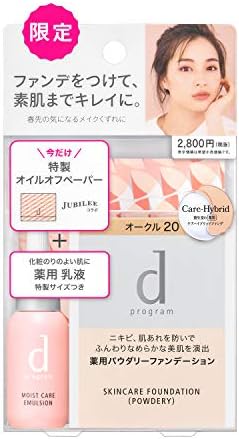 ファンデをつけて、素肌までキレイに。春先の気になるメイクくずれに、肌荒れケアもできるパウダリーファンデーションとお化粧直しに使えるアイテムの組み合わせでキレイをかなえる薬用ベースメイクセット。 [オークル10 セット内容] ・d プログラム 薬用 スキンケアファンデーション (パウダリー) オークル10 (医薬部外品) 敏感肌用ファンデーション、 (レフィル) 現品 10.5g SPF17・PA++ (紫外線吸収剤不使用) ・d プログラム モイストケア エマルジョン R (医薬部外品) 敏感肌用乳液 特製サイズ 11mL ・d プログラム 特製オイルオフペーパー (30枚入) [オークル20 セット内容] ・d プログラム 薬用 スキンケアファンデーション (パウダリー) オークル20 (医薬部外品) 敏感肌用ファンデーション、 (レフィル) 現品 10.5g SPF17・PA++ (紫外線吸収剤不使用) ・d プログラム モイストケア エマルジョン R (医薬部外品) 敏感肌用乳液 特製サイズ 11mL ・d プログラム 特製オイルオフペーパー (30枚入)