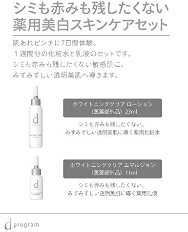 Medicated Whitening Skin Care: Experience 7 days of experience with pinch of skin irritation. A weekly trial set of lotion and emulsion.