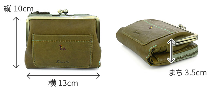 小銭入れ部分ががま口、カードやお札入れ部分はスナップボタン開閉でどちらもワンタッチで開けられ、出し入れしやすく使いやすいお財布です。