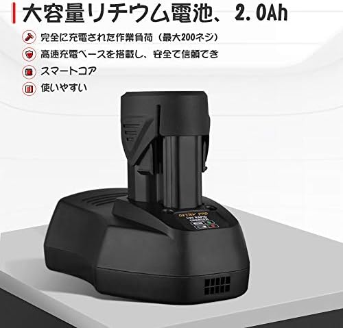 大容量リチウム電池(2000mAh 12V、2.0Ah)。高速充電ベースを搭載する