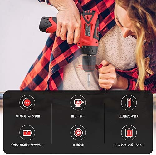 18+1段階トルク調整:18段階トルク自由調整でき。最大トルク:28N・m。目安は相手部材の硬さ・ドリルの状態によって変わるから、作業する前に、不要な木材で力を調整して