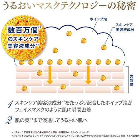 ●泡ボディウォッシュだけに採用のうるおいマスクテクノロジー。スキンケア美容液成分をたっぷり配合したホイップ泡がフェイスマスクのように肌に瞬間密着。