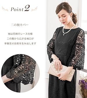 二の腕カバー 袖は花柄のレース仕様 二の腕から広がる袖口が華奢見せ効果を生み出します