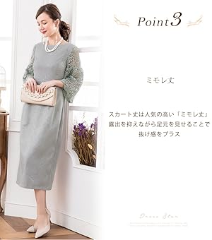 ワンピース丈は「ミモレ丈」にスリットを深く入れたことで程良く色っぽさも醸し出し、大人の女性をアピール。レーススリーブの透け感とお肌とのコントラストも相俟って、重たくなりすぎないデザインに仕上がりました。