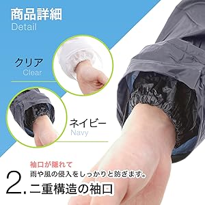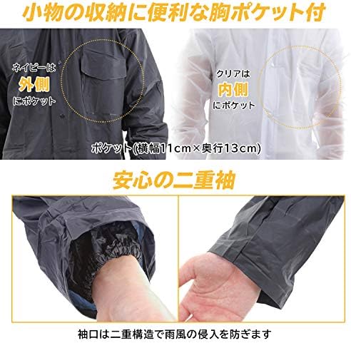 Of course, you can wear it separately on the top and bottom. The hood is also removable. Wear these pants alone to protect your feet from dirt and water splashes, making them extremely convenient. Even in sudden rains, you can easily put it on to prevent rain. It is very easy to put on and take off. The front side of the navy raincoat has one pocket (width 4.3 x depth 5.1 inches (11 x 13 cm). The clear raincoat has one inner pocket (width 4.3 x depth 5.1 inches (11 x 13 cm)), which is convenient for storing small items. There are 2 holes in the abdomen area of the pants, but please rest assured that the air release holes.