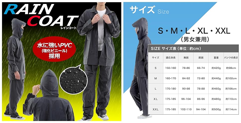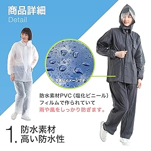 The chic and casual solid color design can be worn by both men and women. Men can wear it cool and women can enjoy wearing it cute. This rainwear can be enjoyed in style even on rainy days, so it can be used in any situation. It is made larger, so it is convenient to use as an item for cold and disaster prevention.