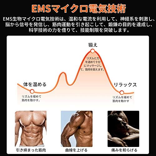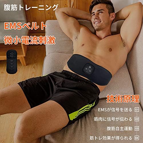 【新型ems技術】新型のEMS技術により、マイクロ電流で筋肉を刺激し、筋肉を強化する効果があります。トレーニングすると同時に、やせ腰の役割も与えられます。腹筋ベルトで20分の簡単エクササイズはジョギング2.5km、腹筋鍛え30分または自由水泳30分に相当します。