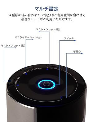 【マルチ設定】4段階の時間設定。(30分間、60分間、120分間、時間制限無し)噴霧ON・連続運転・噴霧OFFの組み合わせは64種類設定可能です。使う空間の広さに合わせて、細かい時間設定をお薦めします。