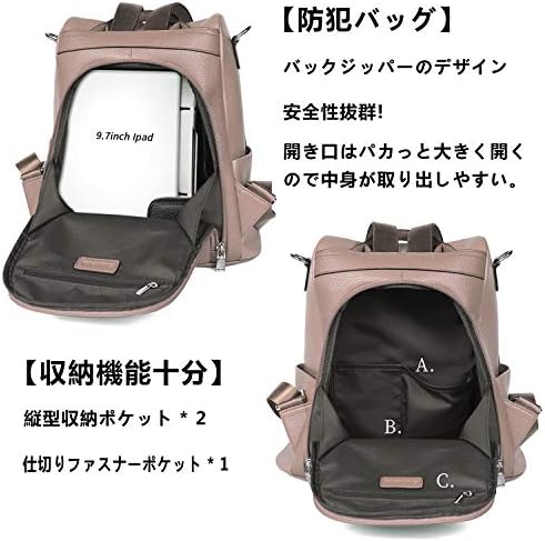 【盗難防止 デザイン】背面ファスナーポケットを設け、安全性能拔群!バックパックのストラップは調節可能です。2つのベルトを金具に付け替えて、リュックサック、ショルダーバッグ、ハンドバッグの自由自在の3wayリュックでお使い頂けます。