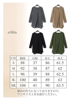 According to customer requests, we have changed the specifications to a simple design without any decorative buttons. Beware of imitations. Other similar products other than eriira may have decorative buttons, so if you are concerned about it, please check it carefully. Size: S: Length 34.3 inches (87 cm), Chest 36.2 inches (92 cm), Shoulder Width 13.8 inches (35 cm), Size M: Length 34.6 inches (88 cm), Chest 35.4 inches (89 cm), Chest 39.4 inches (39 cm), Size XL: Length 39.4 inches (100 cm), Shoulder Width 100 cm).