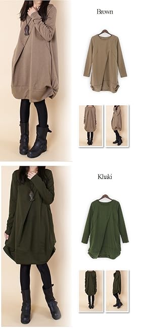 The loose A-line silhouette and dolman sleeves also conceal your body.Comes with handy pockets.