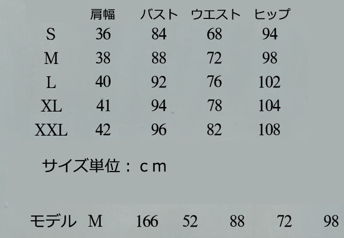 2XL バスト96cm ウエスト82cm ヒップ108cm 肩幅42cm