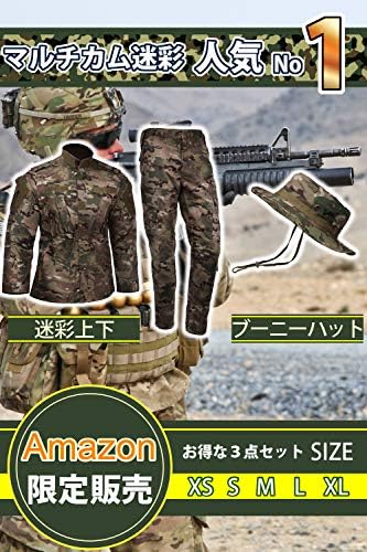 [Falcon] Multicam Airsoft Camouflage Top and Bottom Boonie Hat Belt American Flag Patch 4 Pcs Set XS – XXL