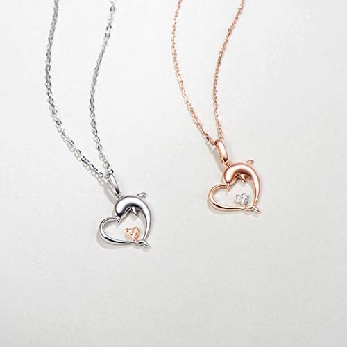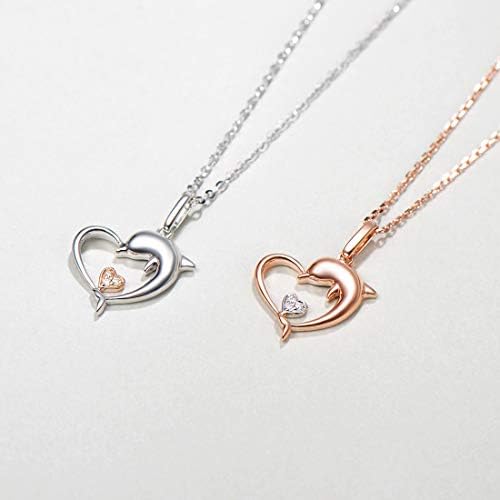 FANCIME ダイヤモンド K18ホワイトゴールド/ピンクゴールド イルカ ハート ネックレス レディース ギフトラッピング済 誕生日 記念日 クリスマス プレゼント ギフト(ピンクゴールド)