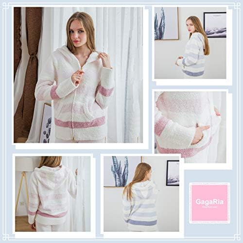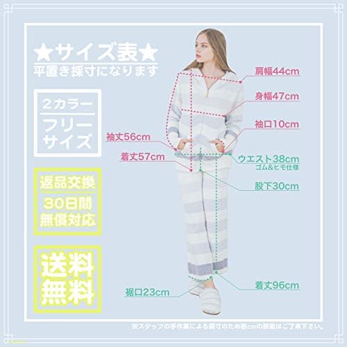 Room Wear Top and Bottom Set: This top and bottom set features a fluffy hoodie top and pants that look great in the picture. Cute border pattern keeps you warm during the cold season, and relaxing at home. Perfect for lounging in the room or sleeping. (Comfortable to Touch) Made with stretchy material. The loose fit makes it perfect for loungewear. The texture is fluffy and marshmallow to touch. Perfect for loungewear. Pants have an adjustable drawstring waist. Experience the high quality of this item. Color: Peach / White – PINK / WHITE – (Pink / White) – Blue / White – BLEW / WHITE – (Blue / White) – 2 colors available. Popular color variations The color looks great even by women from girls to adults, so it matches a wide range of layers. [One size fits all] Top: Length 22.4 inches (57 cm), Sleeve Length 22.0 inches (56 cm), Shoulder Width 17.3 inches (44 cm), Width 18.5 inches (47 cm), Cuff 3.9 inches (10 cm); Pants: Waist 15.0 inches (38 cm), Inseam 11.8 inches (30 inches (96 inches (96 cm). Makes a great birthday or Christmas gift. This is an original GagaRia product. GagaRia is a registered trademark. Please check before making your purchase and make sure it is an official Japanese manufacturer. (30 Day Response) We will provide 30 days unconditionally after purchase. We accept refund, returns and exchanges for any reasons.