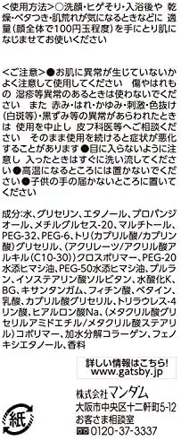 水、グリセリン、エタノール、プロパンジオール、メチルグルセス-20、マルチトール、加水分解コラーゲン、ヒアルロン酸Na、ベタイン、プルラン、(メタクリル酸グリセリルアミドエチル/メタクリル酸ステアリル)コポリマー、PEG-32、PEG-6、トリ(カプリル酸/カプリン酸)グリセリル、(アクリレーツ/アクリ ル酸アルキル(C10-30))クロスポリマー、PEG-20水添ヒマシ油、PEG-50水添ヒマシ油、イソステアリン酸ソルビタン、水酸化K、BG、キサンタンガム、乳酸、カプリル酸グリセリル、トリラウレス-4リン酸、フェノキシエタノール、香料