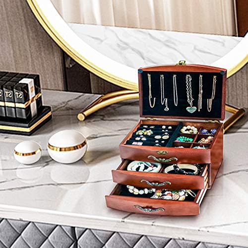 Retro Design: The jewelry box is designed with a retro element. The classic and elegant color and exquisite detail design accentuates the retro appeal. It can be used not only for storing accessories but also for home decoration
