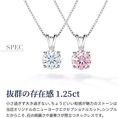 大粒1.25カラット、特別な輝きのNew York Exceptional Cut(ニューヨーク・エクセプショナルカット)の最高級人工ダイヤモンドでお作りした一粒ネックレス。シンプルに豪華、類いまれな輝きで装いが華やぐ存在感が魅力です。