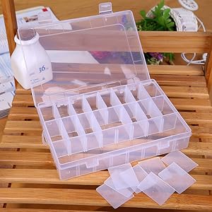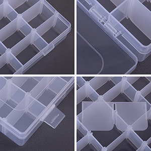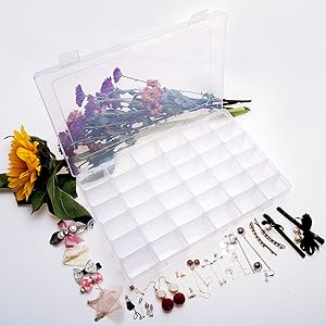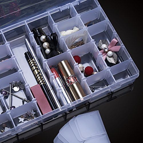 この透明小物入れプラスチック小物ケースはポータブルで実用的なジュエリー収納ボックス オーガナイザーです。ジュエリー、イヤリング、指輪、ネクレス、DIY工具、釣具小物など、用途に合わせてスッキリと整理できる収納ケースです。用途に合わせて移動できる仕切り板付きます。主に頑丈で無害な透明ハードプラスチック材で作られています。格子状に36分割されており、イヤリング、指輪、ビーズ、その他ミニサイズのジュエリーの収納に最適です。ボックス内の仕切りは動かして調節が可能、収納部をお好みのサイズにすることができます。その他、ジュエリー容器としても、または様々な錠剤や小さな薬の小物入れ収納の利用もおすすめです。
