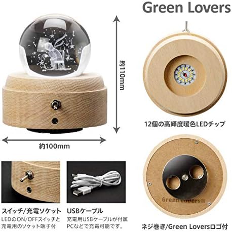 🍀【曲目:星に願いを】土台を回すとオルゴールが流れます♪ オルゴールの音色と共に回転するクリスタルボールに見惚れて、惚れ惚れします。。。