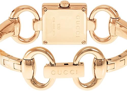 馬具工房を起源に持つグッチのシンボル的存在である「ホースビット」をモチーフにしたアクセサリーウォッチ。ホースビットを表現したバングルブレスと正方形のケースが特徴で、一目でグッチとわかるデザインながら、主張しすぎない控えめで上品なアクセサリーウォッチに仕上がっています。どんな場面や洋服にも合わせられる、使い勝手とファッション性を合わせた時計です。